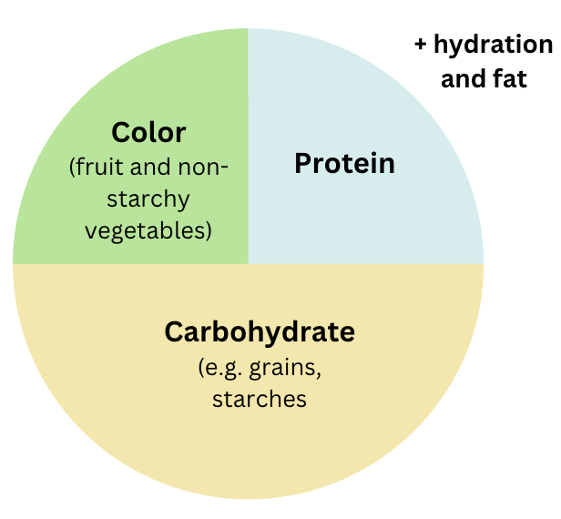 Fruit and non-starchy vegetables are technically carbohydrates, so you might wonder why I’m classifying them as “color” instead of carbohydrates. I make this distinction because 1) these foods are typically significantly lower in carbohydrates per serving compared to grains and starchy vegetables, making it difficult to rely on them alone to meet an athlete's elevated carbohydrate and energy needs; 2) the primary nutritional value of colorful produce is the vitamins, minerals, antioxidants, and fiber that they provide. By treating fruit/non-starchy vegetables as a separate category, we ensure that these nutrient-dense foods remain a consistent part of the plate while still leaving room for the energy-dense carbohydrates that athletes need to fuel performance.